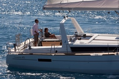 With her four cabin layout, the Oceanis 45 provides ample space for all the family and her large fold down transom is great when at anchor or in harbour.